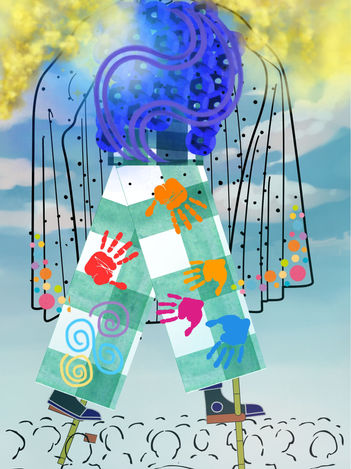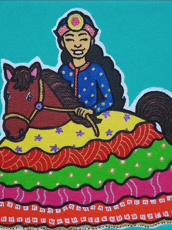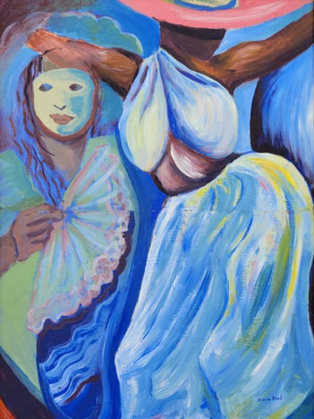 "Les Dame Du Carnaval" is composed of traditional characters which are portrayed in our Trinidad Carnival. The figures are masked so that they will not be identified.This was the mask of rebellion where the African slaves fought for survival and self- identity.
